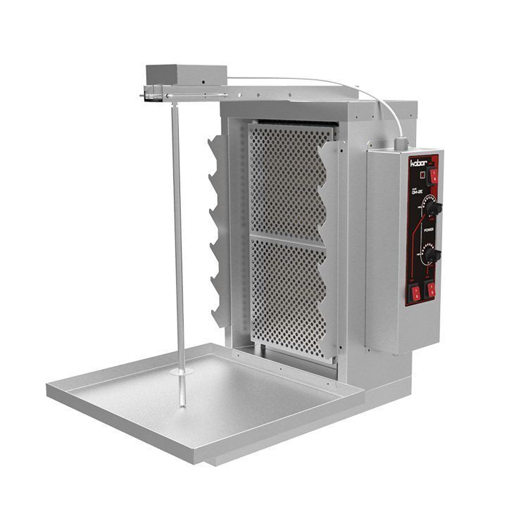 510х670х800 мм., Аппарат GM-2E предназначен для приготовления мясного блюда — шаурма. Корпус из пищевой нержавеющей стали, регулируемое расстояние между тэнами и мясом, 2 уровня нагрева, электропривод. Мощность 4 кВт, 220В