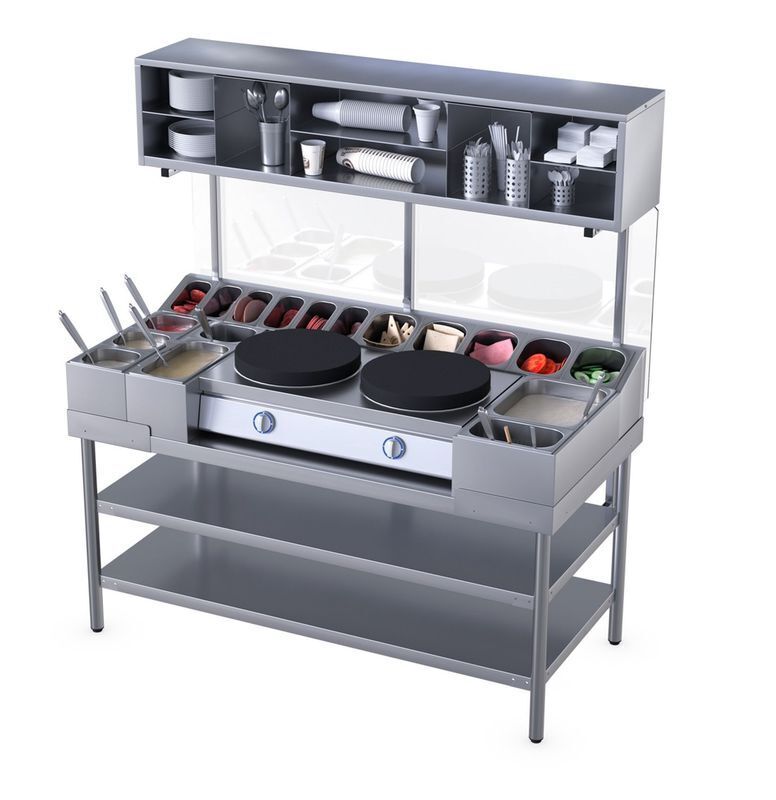 1500х740х1670 мм, МИНИМАЛЬНАЯ ПАРТИЯ ДЛЯ ЗАКАЗА 10 ШТ.!!!, разборная Комплект гастроемкостей в составе блинной станции: Гастроемкость GN-1/2 Н-150 1шт. Гастроемкость GN-1/3 Н-100 1шт. Гастроемкость GN-1/4 Н-150 1шт. Гастроемкость GN-1/6 Н-100 9шт. Гастроемкость GN-1/9 Н-100 6шт.