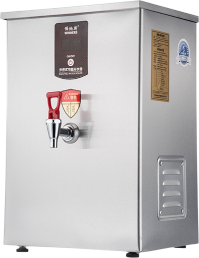 Кипятильник проточный Viatto VA-WB26MT предназначается для автоматического непрерывного подогрева питьевой воды до температуры +100 °C. Данное оборудование может использоваться в: заведениях общественного питания (барах, кафе, ресторанах, столовых), отелях, гостиничных комплексах, медико-санитарных объектах, дошкольных, общеобразовательных учреждениях. Корпус и бак кипятильника созданы из высокопрочной нержавеющей стали, которой не страшны перепады температурных режимов, повышенная влажность и умеренные механические воздействия. Эта модель имеет электронную панель управления. Информация о температуре воды выводится на цифровой дисплей. Подача воды осуществляется через 1 кран. Характеристики Основные характеристики оборудования: тип – проточный, необходимость подключения к водопроводу, объем бака для воды – 26 л, производительность – 60 л/ч, способ установки – настольный, управление – электронное, мощность – 3 кВт, материал производства корпуса – нержавеющая сталь.
