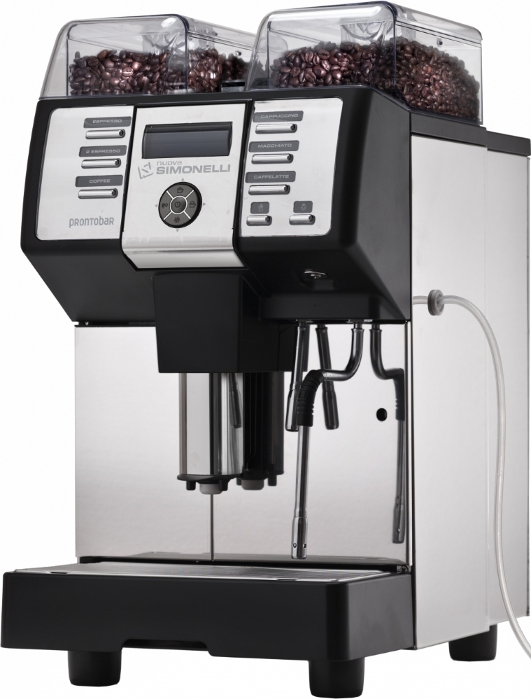 Кофемашина Nuova Simonelli Prontobar 2 grinders, black, AD+Russian LCD (146038) с подключением к водопроводу предназначена для приготовления кофе эспрессо, капучино, ристретто, лунго, макиато и ещё десятка других кофейных и молочных напитков. Оснащена одной съёмной регулируемой термокомпенсированной группой, двумя встроенными кофемолками, двумя бойлерами, паровым краном и краном для подачи горячей воды. Осуществляет автоматическую дозацию напитка, подачу горячей воды и пара. Группа изготовлена из литого алюминия и нержавеющей стали, паровой кран и бойлеры - из нержавеющей стали, корпус - из нержавеющей стали с вставками чёрного ABS-пластика.