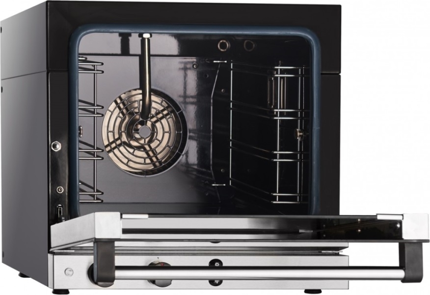 Электрическая конвекционная печь ABAT КПП-4-1/2Э предназначена для приготовления большого ассортимента блюд, включая выпечку кондитерских и хлебобулочных изделий, а также для разогрева готовой продукции и размораживания мяса, рыбы или полуфабрикатов. Благодаря мощному реверсивному вентилятору достигается равномерное распределение тепловых потоков по всей камере. Рекомендуется к использованию в качестве основного теплового оборудования на предприятиях общественного питания и торговли малого и среднего формата или в качестве вспомогательного - в заведениях с большой проходимостью. Важно: Противни GN 1/2 (325х265 мм) не входят в комплект поставки и приобретаются отдельно В комплекте шнур питания с вилкой Оборудование необходимо устанавливать на стол, подставку или расстоечный шкаф; рекомендуемая подставка: ПК-8-02, расстоечные шкафы: ШРТ-8-02 или ШРТ-8-02Э (приобретаются отдельно) Настройки и функции: Электромеханическая панель управления Кнопка ручного впрыска влаги Ручной режим (запуск, установка температуры и завершение работы печи оператором) Встроенный таймер (время установки - от 5 до 60 минут) Ключевые особенности: Корпус и камера из чёрного эмалированного металла Инжекционное пароувлажнение Аварийное выключение при достижении 320 °С Внутренняя подсветка камеры Скруглённые углы камеры предотвращают скапливание грязи по краям стенок и облегчают очистку Регулируемые по высоте ножки Дополнительные опции (приобретаются отдельно): Соединительный комплект для установки расстоечного шкафа и печи или двух печей в колонну
