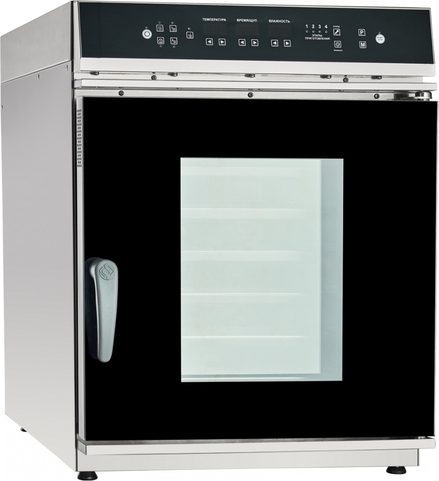 Инжекционный пароконвектомат ABAT Мини-ПКА 6-2/3В предназначен для приготовления широкого ассортимента разнообразных блюд, а также для выпечки хлебобулочных изделий на предприятиях общественного питания и торговли. Готовность продуктов достигается за счёт нагрева паром и горячим воздухом совместно или по отдельности. Инжекционный впрыск насыщает паром воздух в рабочей камере, позволяя сохранить естественную влажность, существенно сократить потерю веса продуктов и снизить число калорий готовых блюд благодаря отсутствию необходимости использовать масло. Пароконвектомат заменяет собой сразу несколько видов теплового кухонного оборудования и позволяет одновременно готовить различные блюда с сохранением вкуса и аромата каждого продукта. Благодаря малым габаритам устройство подходит для размещения в условиях ограниченного пространства, а также может использоваться на выездных мероприятиях. Важно: Гастроёмкости GN 2/3 не входят в комплект поставки и приобретаются отдельно В комплекте штатный шнур питания КГН 3х4 мм² Оборудование необходимо устанавливать на стол или подставку; рекомендуемая подставка: ПК-6-23 (приобретается отдельно) Режимы работы: Конвекция (от +30 до +270 °С) – нагрев при помощи ТЭНов без подачи пара в рабочую камеру Конвекция с паром (от +30 до +240 °С) – нагрев при помощи ТЭНов с одновременной подачей пара в рабочую камеру Разогрев с паром (от +100 до +160 °С) – поддержание температуры готового блюда и бережный подогрев полуфабрикатов Низкотемпературный пар (от +30 до +98 °С) – деликатное приготовление "нежных" блюд с подачей большого количества пара в рабочую камеру Пар (+98 °С) – нагрев при помощи ТЭНов с подачей большого количества пара в рабочую камеру Настройки и функции: электронное панель управления с мембранной клавиатурой Возможность записи до 110 собственных программ (до 4 этапов в каждой) Регулировка влажности от 0% до 100% Встроенный таймер (время установки от 1 минуты до 9 часов 59 минут) Ручная мойка с помощью режима "Пар" Многоточечный температурный щуп для измерения температуры внутри продуктов Ключевые особенности: Корпус и рабочая камера выполнены из высококачественной нержавеющей стали Быстрое достижение заданной температуры Вентилятор с реверсом и особая аэродинамика камеры обеспечивают равномерное распределение температуры по всем уровням Система закрывания "свободные руки" позволяет закрыть дверцу одним движением руки Двухходовой механизм открывания дверцы обеспечивает защиту персонала от воздействия горячего пара Вентилируемая дверца с двойным термостойким остеклением гарантирует полную теплоизоляцию и исключает вероятность ожогов с внешней стороны оборудования Рабочая камера соответствует стандарту влагозащищённости IPX5, благодаря чему её можно мыть изнутри струёй воды Закруглённые углы рабочей камеры обеспечивают полную гигиеничность и лёгкую очистку Встроенный лоток для сбора конденсата предотвращает попадание капель на пол при открытии дверцы Внутренняя подсветка камеры Регулируемые по высоте ножки Низкое энергопотребление Дополнительные опции (приобретаются отдельно): Дымогенератор для копчения продуктов