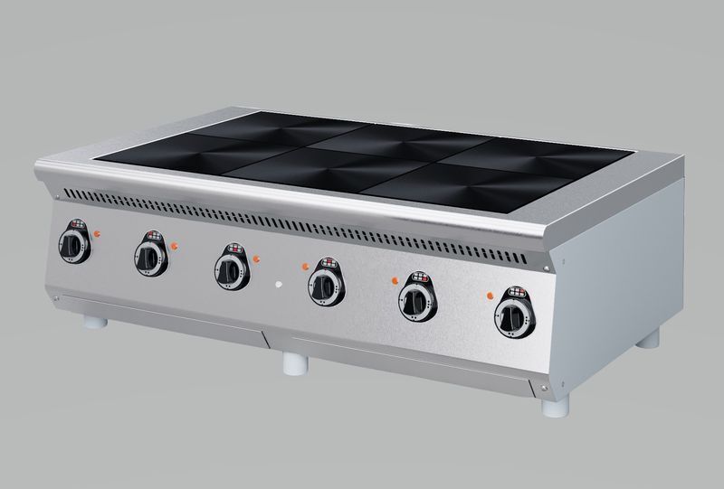 Количество конфорок, шт 6 Температура рабочей поверхности конфорок, °С 400 Площадь жарочной поверхности, м2 0,54 Время разогрева до макс. температуры конфорок , мин 25 Время разогрева жарочного шкафа до раб. темпер. 240 °С, мин 30 Номинальная потребляемая мощность, кВт 16,8 Частота тока, Гц 50 Род тока Трехфазный с нейтралью , переменный Размеры конфорки, мм (300±2)х(300±2) Потребляемая мощность конфорки, кВт 2,8 Номинальное напряжение, В 400 Температура срабатывания термовыключателя, °С 324 Co (возможен заказ с термостатом +320°С) Количество переключателей мощности, шт 6 Соотношение мощности конфорки 1/4, 2/3 , 1 Допустимая нагрузка на одну конфорку, кг 20 Высота, мм 370 Высота с воздуховодом, мм 450 Ширина, мм 700 Ширина с воздуховодом 760 Длина, мм 1110 Размеры в упаковке (ДхШхВ) 1315x900x576 Нетто, не более кг 93 Брутто, не более кг 127 Исполнение без духовки, настольная, краш. боковины, без воздуховода