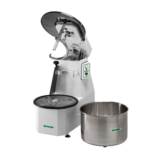 Тестомесильная машина Fimar 12/CN 220v – электромеханическое устройство для коммерческой эксплуатации в ресторанах и столовых, на небольших пищепроизводствах. Благодаря двойной системе перемешивания – одновременное вращение рабочей емкости и насадки, тесто выходит более однородным и воздушным, сокращается время приготовления. Возможна комплектация машины второй скоростью и цифровым таймером. Особенности модели: односкоростная модель со съемной рабочей емкостью и подъемной траверсой; микровыключатель для блокировки работы при поднятой рабочей голове; влагозащищенная электромеханическая панель – кнопки запуска и остановки вращения; ориентировочная производительность при загрузке 12 кг на цикл – 36 кг/ч; защитная крышка из дымчатого поликарбоната, отверстие для ингредиентов. Стандартная комплектация: стальной окрашенный корпус машины; стальная коррозионностойкая дежа диаметром/высотой – 320x210 мм; спиральная насадка и тесторассекатель из полированной стали пищевой марки; опоры с регулировочными винтами – корректировка высоты.